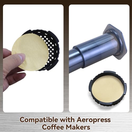 CAFEMASY Coffee Filter Holder with 200 Count Paper Filters Compatible with Aeropress XL Espresso Maker Replacement Round Disposable Coffee Filters and Holder Coffee Accessories Pack