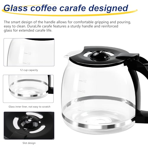 12-Cup Glass Coffee Carafe Replacement Pot Compatible with Mr Coffee, Black & Decker and 12 Cup Kitchenaid Carafe Black with Close Handle, Replacement for PLD12, PLD12-RB, PLD12-NP
