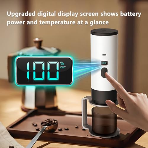 【Smart Display and Professional-Grade Extraction】:The digital screen displays temperature and battery level in real-time, while 20-bar pressure ensures restaurant-quality extraction. It can make lattes, American coffee, or authentic Italian espresso, and can even be used as a mini latte machine with an optional milk frother attachment.