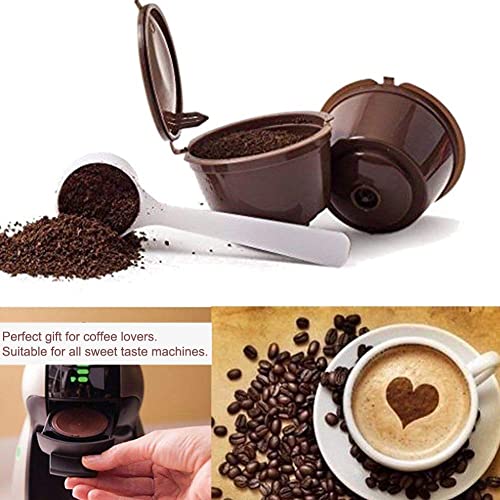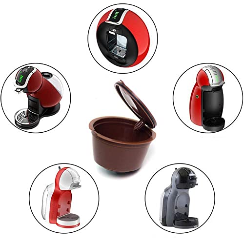 5 PCS Reusable Coffee Capsule with Mesh Filter Cup for Dolce Gusto Machines Refillable Capsule Pod Compatible Filter Cups with 1Pc Plastic Spoon and 1 Cleaning Brush (Brown)