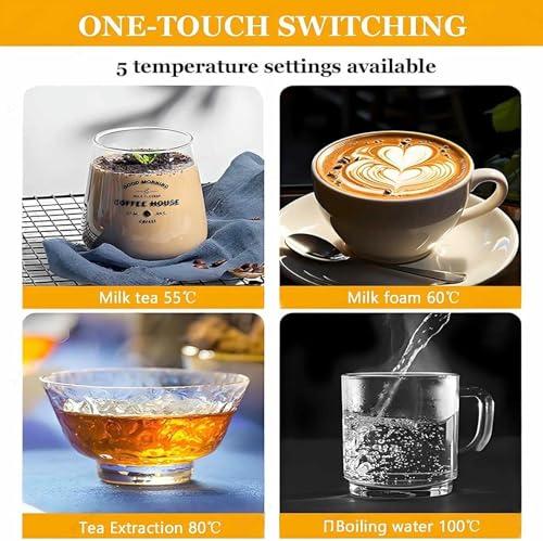 ✔【Smart five-speed temperature preset】: Electric steam milk frother switches five optimized temperatures (suitable for matcha, black tea, latte, etc.) with one button. LED screen + pressure gauge displays real-time data, allowing you to work more efficiently and smarter without any effort.