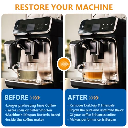 Enjoy Better Tasting Coffee: The espresso machine cleaning tablet maximum efficiency removing hard water buildup, calcium, limescale, grime and oil in coffee machine, deeply cleans all internal parts and deodorizes.Taste your coffee, not the nasty buildups in your machine.
