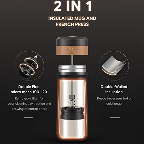 Versatile design: This Travel French Press not only brews your favorite coffee or tea but also serves as a travel mug, allowing you to make coffee now and drink later.