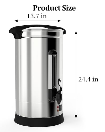 【Rapid Heating】:1500W double heating tube design that can heat 110 cups of coffee in 30 minutes. The shell is made of 403 steel, with good heat insulation, you do not have to worry about hand burns.