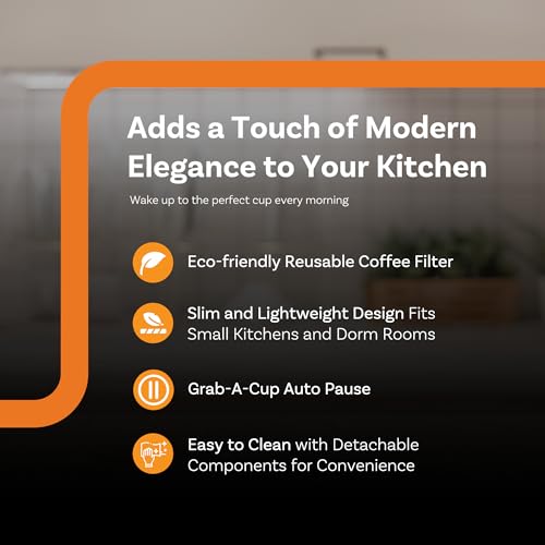 Compact and Space-Saving: This slim and lightweight coffee maker fits perfectly in small kitchens, dorm rooms, or office spaces, offering portability and convenience without compromising performance