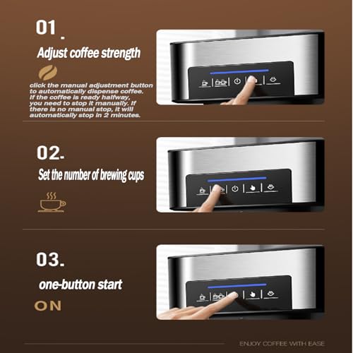【Easy to Operate】The coffee machine’s easy-to-use touch button controls can be used to grind coffee, allowing you to choose the type you want from 1 cup, 2 cups, steam, and hot water, ensuring worry-free brewing. Bubble experience.