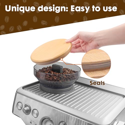 for Breville Barista Express Espresso Machine, Coffee Bean Replacement Lid on Coffee Maker Top Wooden Hopper Lid with Sealing Ring, Espresso Machine Accessories Bean Cover, Beech Wood