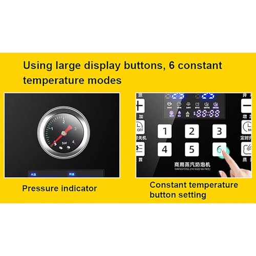 【DOUBLE TEMPERATURE DISPLAY】: Upgraded from traditional only a temperature display, this steam milk frother has both hot water temperature and cup temperature display: Real-time observation of the temperature of the beverage being heated, keep know the temperature of hot water. More indicators display the working status.