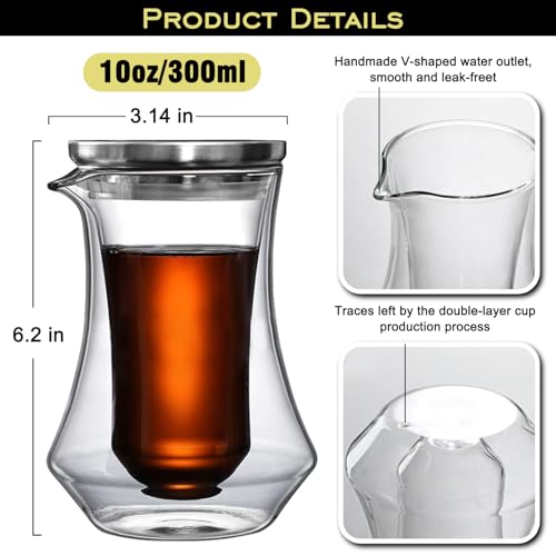 HOOVIEN 10oz Coffee Carafe – Double-Walled Insulated Glass Design for Heat Retention, Stylish & Compact Thermal Carafe for Personal Use at Home, Office, or Travel