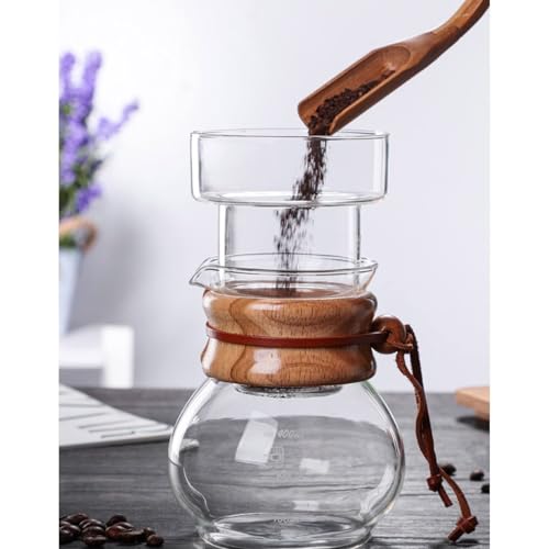 1000ml Drip Tower Coffee Maker, Glass Cold Brew Coffee Pot, with Slow Drip Technology, Wood Stand, Iced Coffee Maker for Cafe Home Kitchen, 8-10 Cup
