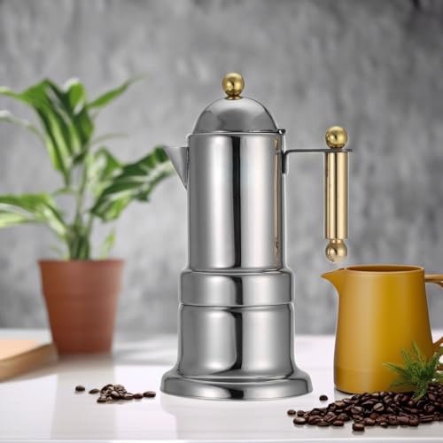 Ichiias Moka Pot, Stainless Steel Moka Pot Stovetop Espresso Coffee Maker with Safety Valve 4 Cups