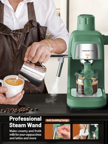 KEENSTAR – 3.5 Bar Espresso Machine with Milk Frother, 800W Compact Machine with Preheat Function, 4 Cup Coffee Maker for Cappuccino or Latte – Gift for Lovers