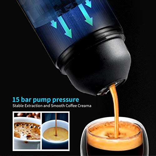 Electric Automatic Design: This portable espresso maker is an electric espresso maker for a hand held machine automatic extraction at home outdoor camping or travel. It has USB power cable for convenient use since it can be easily connected .