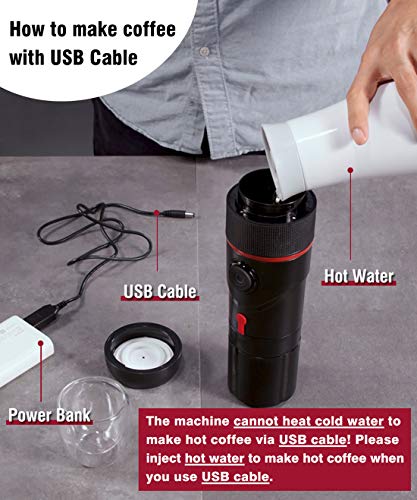 KELUNIS 60Ml 12V Portable Coffee Makers, Car Coffee Machine USB Capsule Espresso Maker/Hot Cold Water Heating, for Travel Hiking And Picnic