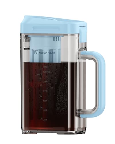 Maestri House Cold Brew Coffee Maker, 40oz Iced Tea and Coffee Maker Brewer Space Saving Tritan Pitcher, 350 Mesh Filter, 100% Leak-Proof