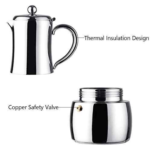 MYYINGELE Espresso Maker, Moka Pot Made of Stainless Steel with Safety Valve, Makes 4 Cups of Espresso, Classic Cafe Maker, Suitable for Induction Hobs