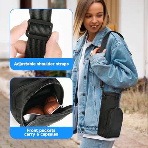 Exquisite Design & Versatile Colors – The portable bag is designed with a double-head zipper, which is smooth in use without getting stuck. The clever color matching of double black is simple and high-end. Adjustable shoulder strap for easy carry when you are on traveling or outside activities. Outer pocket is great for capsule storage, enjoy your coffee everywhere.