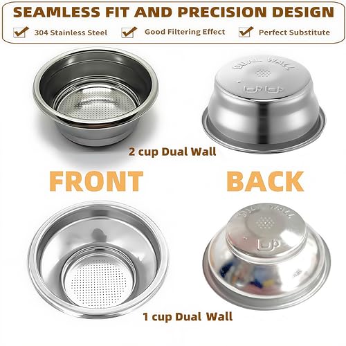 Upgrade Dual Wall Filtration:Original Two Cup Dual Wall basket. 54 mm Original Dual Wall Filter Basket , Fits Breville Barista Express, Pro, Touch, Infuser and Duo-Temp Pro Espresso Machines, 1&2 Cup Double Wall Filter Set