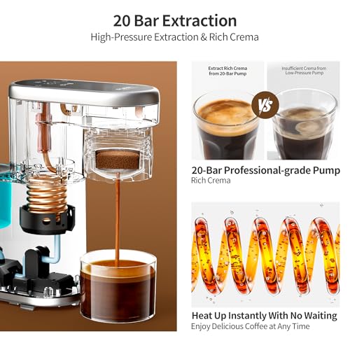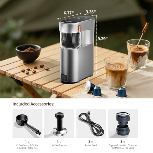 KELUNIS Portable Espresso Coffee Machine, 15Bar Pressure Hot And Cold Extraction Automatic Coffee Maker with Foaming Function, Capsule & Coffee Powder Compatible