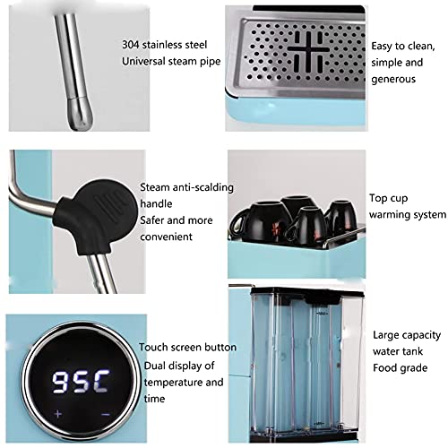 QJRGUY Semi Automatic Espresso Fresh Tea 2in1 Coffee Machine, 1850W High- Instant Boiler, Smart Thermostat, Stainless Steel, Blue