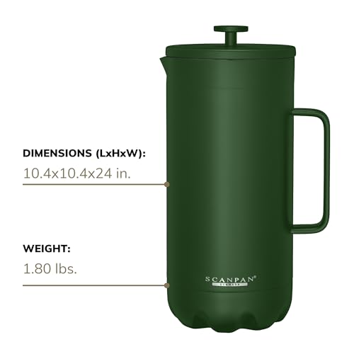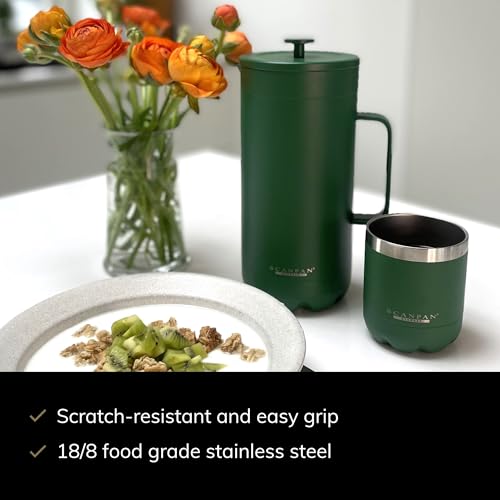 Scanpan TO GO French Press Coffee Maker 1.0L (Forest Green) + 4 Vacuum Cups 250 mL (Forest Green) – 18/8 Food Grade Stainless Steel – Scratch-Free Coating – Dishwasher Safe