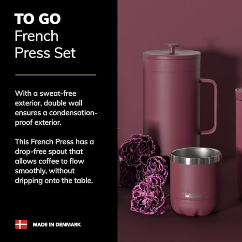 Scanpan TO GO French Press Coffee Maker 1.0L (Persian Red) + 2 Vacuum Cups 350 mL (Persian Red) – 18/8 Food Grade Stainless Steel – Scratch-Free Coating – Dishwasher Safe