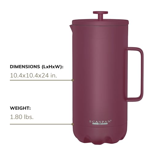 Scanpan TO GO French Press Coffee Maker 1.0L (Persian Red) + 2 Vacuum Cups 350 mL (Persian Red) – 18/8 Food Grade Stainless Steel – Scratch-Free Coating – Dishwasher Safe