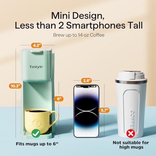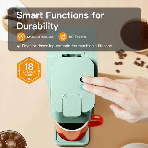 Tastyle Mini Hot & Iced Coffee Maker, K-Cup & Ground Beer Sizes 170-300ml with Recipe Book for Home, Travel, Caravan, Office & Bedroom, Mint