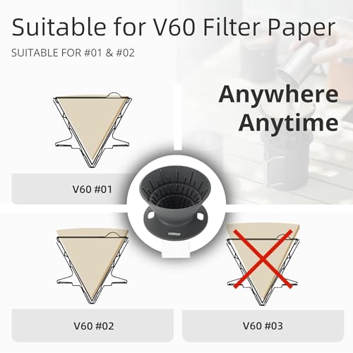 vandroop Collapsible Pour Over Coffee Dripper, Reusable Silicone Pour Over Coffee Maker For Camping, Travel&Home, Portable Single Clever Coffee Dripper With 10 V60 Filter Papers #02(Grey, 2-3 Cup)