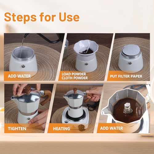 MYYINGELE 200ml/4 Cup Portable Espresso Coffee Maker Moka Pot Stainless Steel with Electric stove Filter Percolator Coffee Brewer Kettle Pot