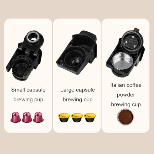Packing list: Small capsule brewing cup, large capsule brewing cup, espresso powder brewing cup, coffee spoon, instruction manual, pump