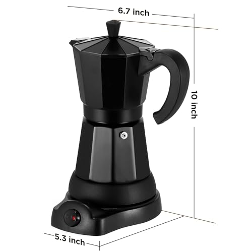 Independent Base Electric Moka Pot: This electric espresso machine, with its classic octagonal design and independent base, paired with a simple and intuitive ON-OFF button, provides you with a fast and efficient coffee brewing experience. Whether at home or outdoors, you can easily enjoy coffee time.