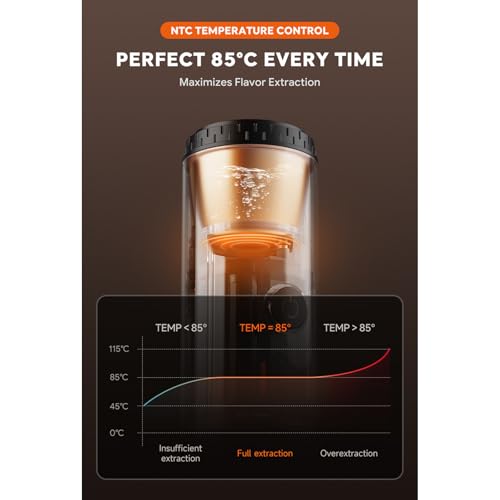 Espresso Machine with USB Rechargeable Design. Enjoy coffee featuring a built in 7800mAh battery for 15 brews, 19Bar pressure extraction, and temperature control to maintain optimal 85°C brewing conditions