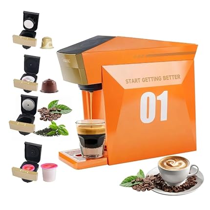 4 In 1 Single Server Coffee Maker, Mini Coffee Machine for Nespresso Original/K cups/Dolce Gusto Original/Ground Coffee, 19 Bar Espresso Machine Fit for Home Office, Orange